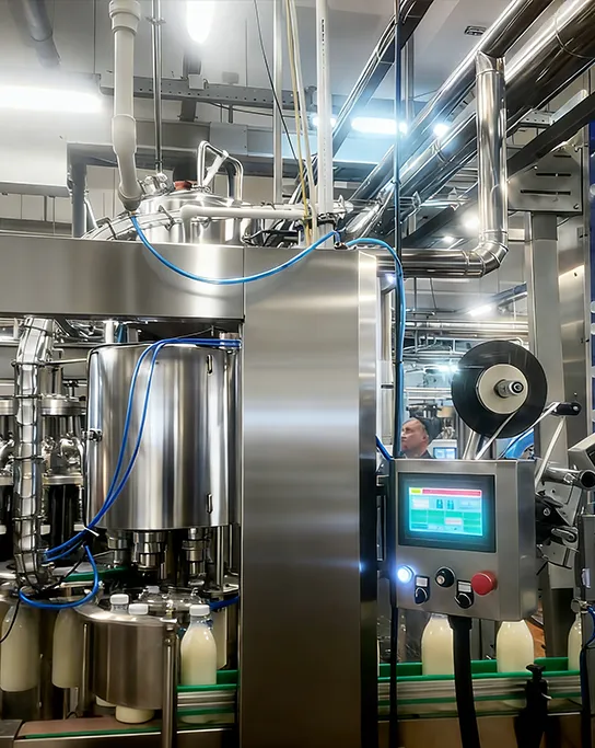 | 2. Standardization | Fat content adjusted (whole, skim). | Recipe mixing: coffee strength, sweetness, milk ratio. | Precise volumetric or mass filling is critical for recipe consistency. |