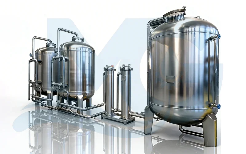 RO Product Water Tank (SUS304 ): With 0.22µm vent filter to avoid airborne contamination.